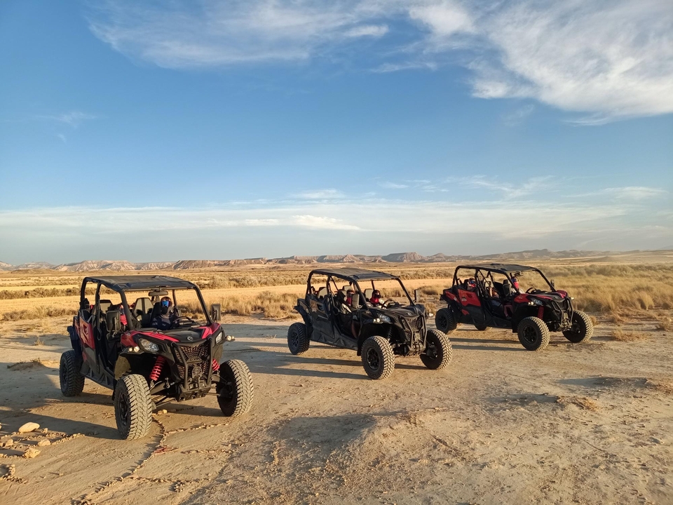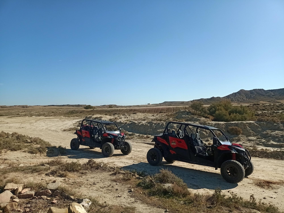 Vehículos profesionales que combinan la máxima seguridad con la diversión de una experiencia todoterreno única en las Bardenas Reales de Navarra.